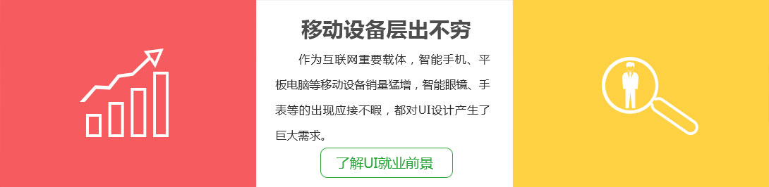 UI專業(yè)的開始階段將系統(tǒng)的學(xué)習(xí)美術(shù)知識(shí)和培養(yǎng)設(shè)計(jì)基礎(chǔ)UI設(shè)計(jì)是指對(duì)軟件的人機(jī)交互、操作邏輯、界面美觀的整體設(shè)計(jì)。UI涉及手機(jī)移動(dòng)設(shè)備、網(wǎng)站平臺(tái)、軟件平臺(tái)、智能電視、游戲、電子出版等行業(yè)。隨著科技的發(fā)展,用戶越來重視軟件的終端體驗(yàn),UI設(shè)計(jì)在人類的數(shù)字生活中已經(jīng)無處不在,因此對(duì)具備綜合能力的UI設(shè)計(jì)人才需求也急劇上升,國內(nèi)UI設(shè)計(jì)人才的缺口達(dá)數(shù)十萬人,UI設(shè)計(jì)師的職業(yè)前景和就業(yè)領(lǐng)域越來越寬廣。